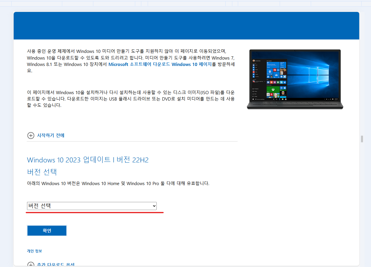 이런 부팅 USB를 제작하려면 윈도우 이미지(ISO 파일)를 다운받아야 하는데, 윈도우 이미지는 마이크로소프트 홈페이지에서 간편하게 다운 가능합니다.