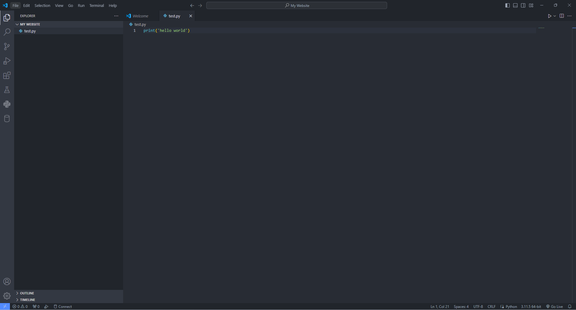 VSCode의 터미널에서 우리가 방금 입력한 hello world가 출력되는걸 볼 수 있습니다.