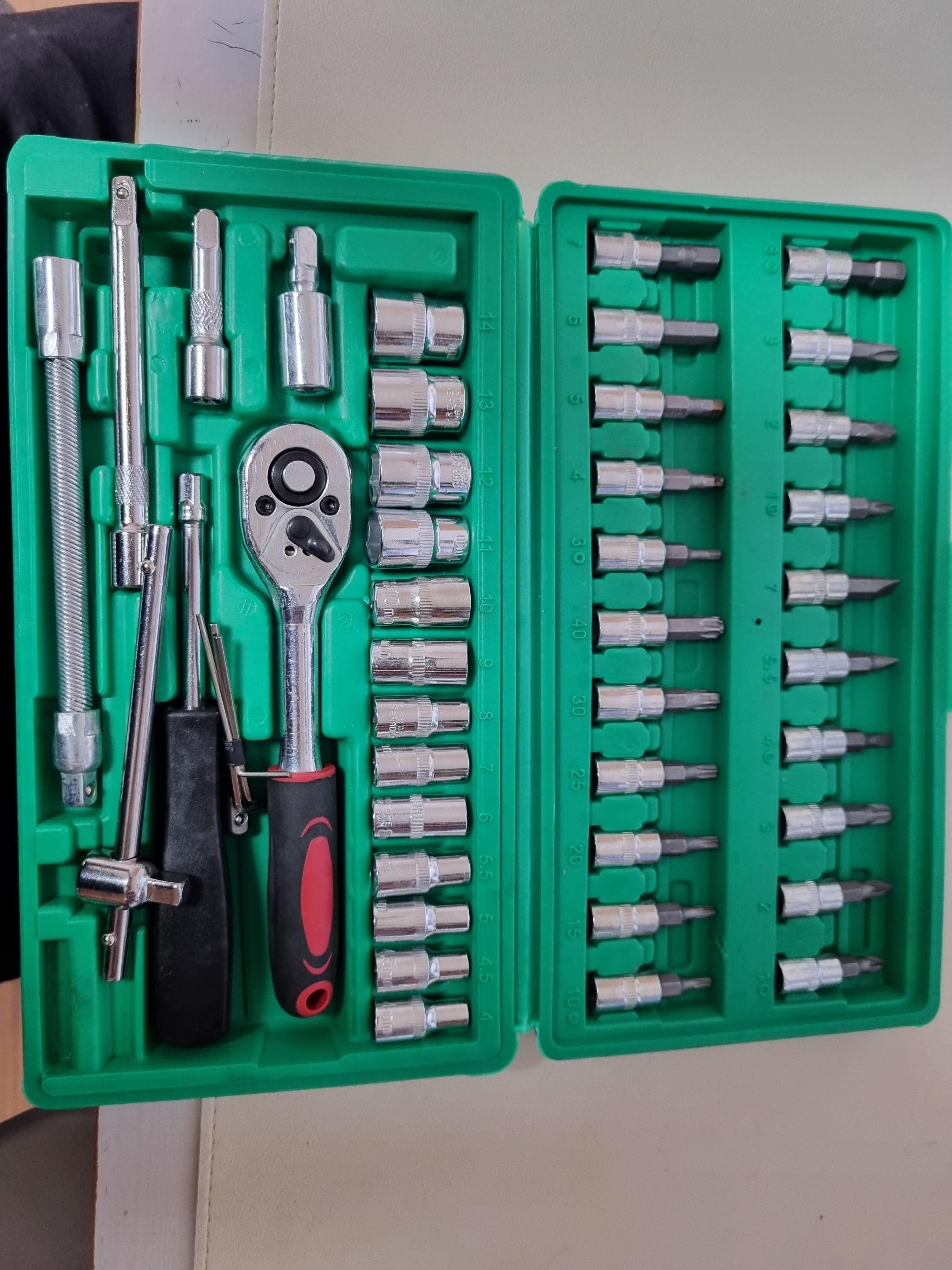 1) 킥보드 발판의 나사를 소켓 렌치에 육각 비트를 연결한 후 사용하여 모두 풀어줍니다. 이 때, 킥보드 뒷부분 바퀴 덮개에도 나사가 있으니 모두 풀어주세요.