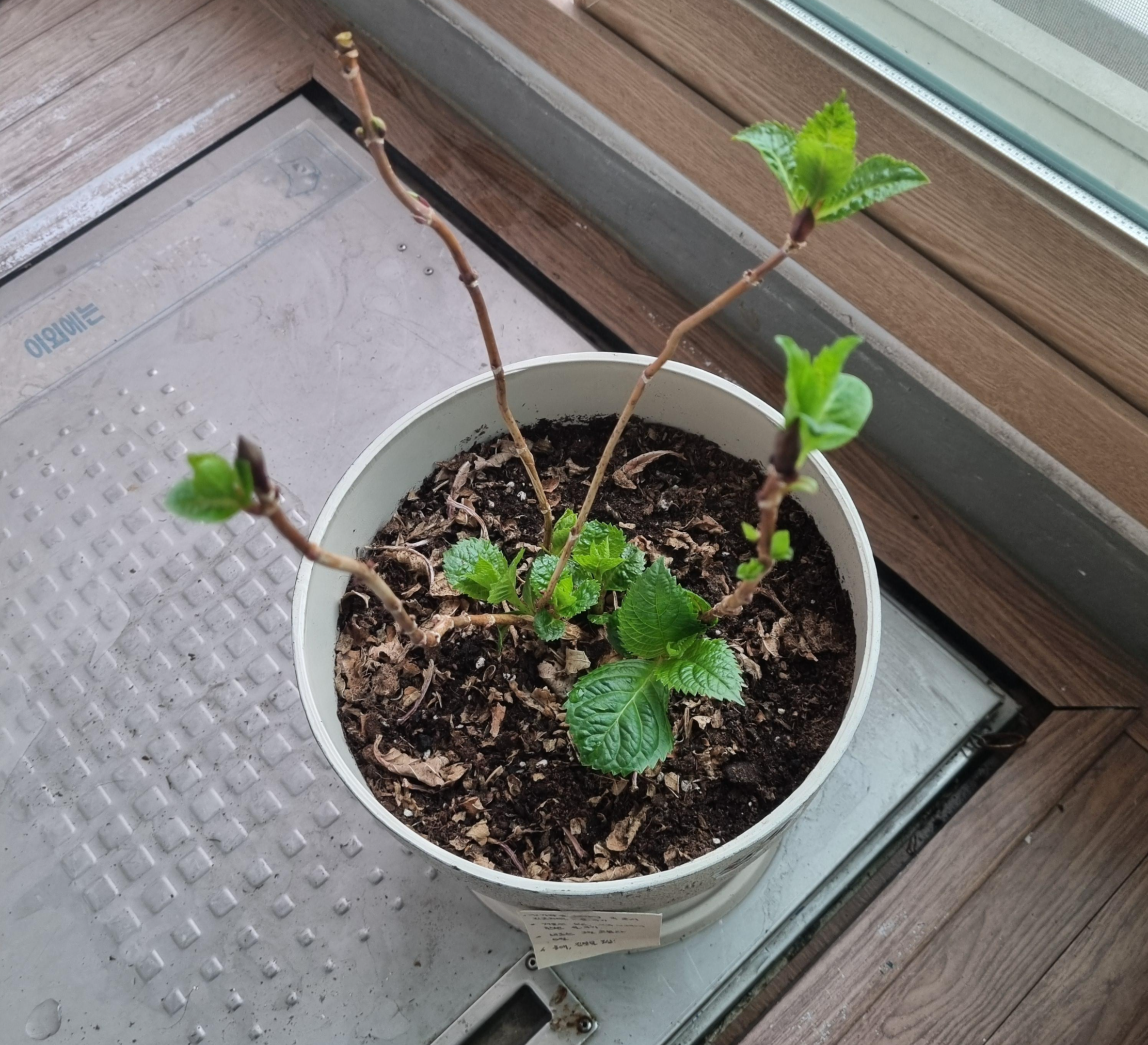 그렇게 제가 데려온 수국은 첫 겨울을 맞이해 푸르던 잎은 떨어지고, 시간이 더 지나 2025년의 봄이 찾아왔습니다.