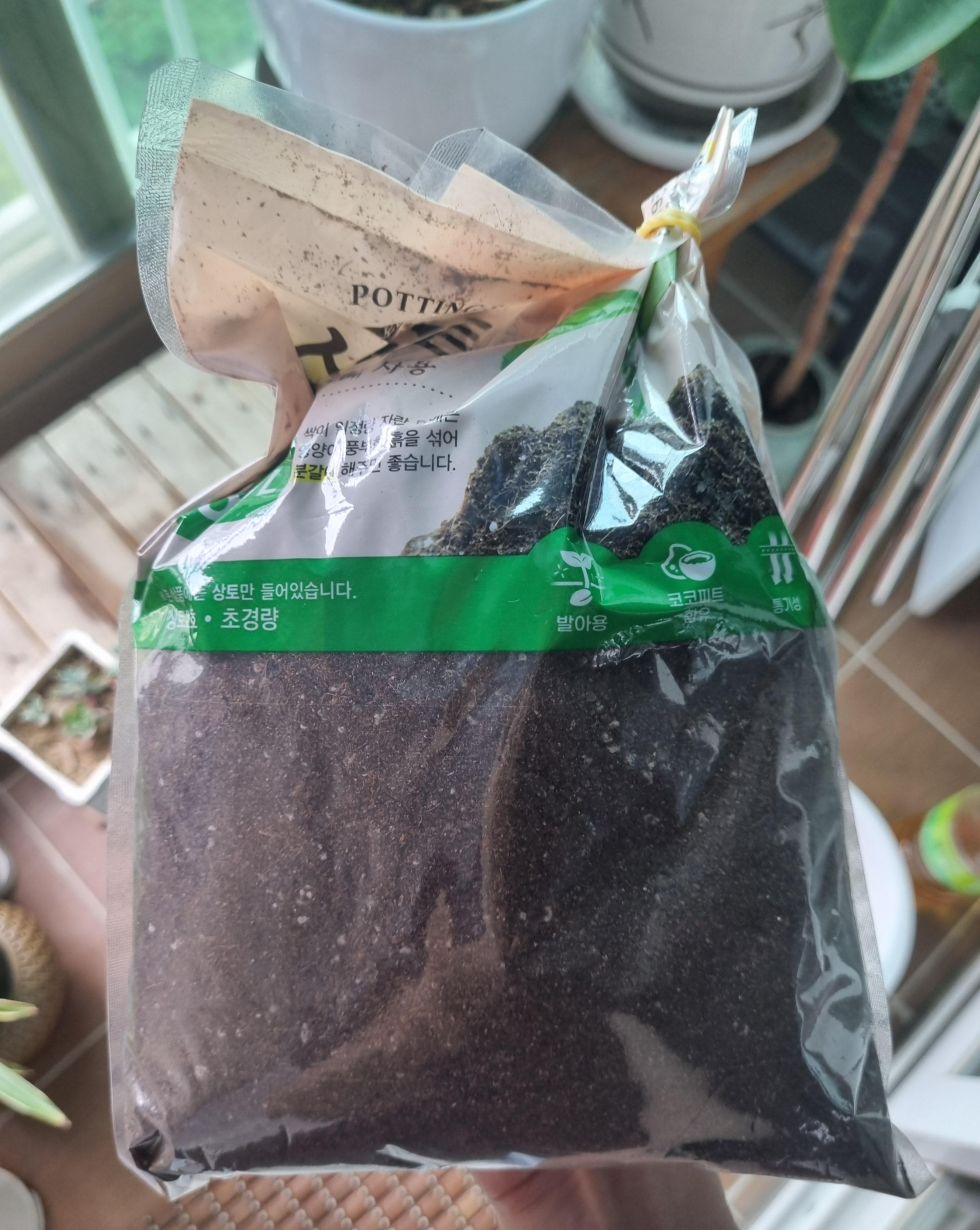 저희 집은 아버지도 식물을 키워서 기본적으로 흙이 있긴 합니다만, 죄다 부엽토나 퇴비 같은 것이라 상토가 없습니다. 그렇다고 한아름상토 같은 50L 포대기를 또 배송시켜서 집에다가 쌓아두기도 좀 뭐했습니다.