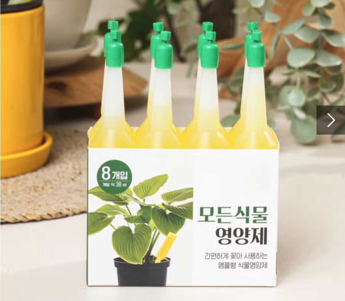 멋모르고 식집사 생활을 처음 시작했을 땐, 다이소에 있는 노란 액체 비료 앰플 8개짜리를 구매하여 제 첫 식물인 수국에 꽂아줬습니다. 하지만 사오고 나서 정보를 찾아보니 다이소 액체 비료는 굉장히 성분이 연하고(0.04%) NPK 비율도 1:1:1이라 그저 그렇다는 얘기를 주워 듣게 되었습니다.
