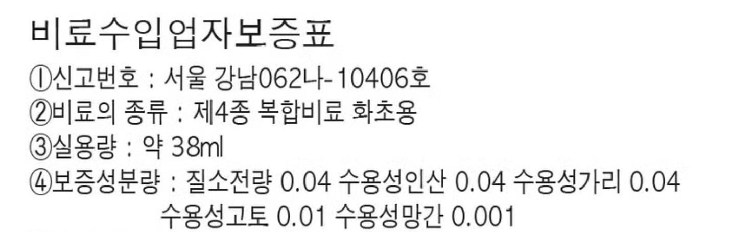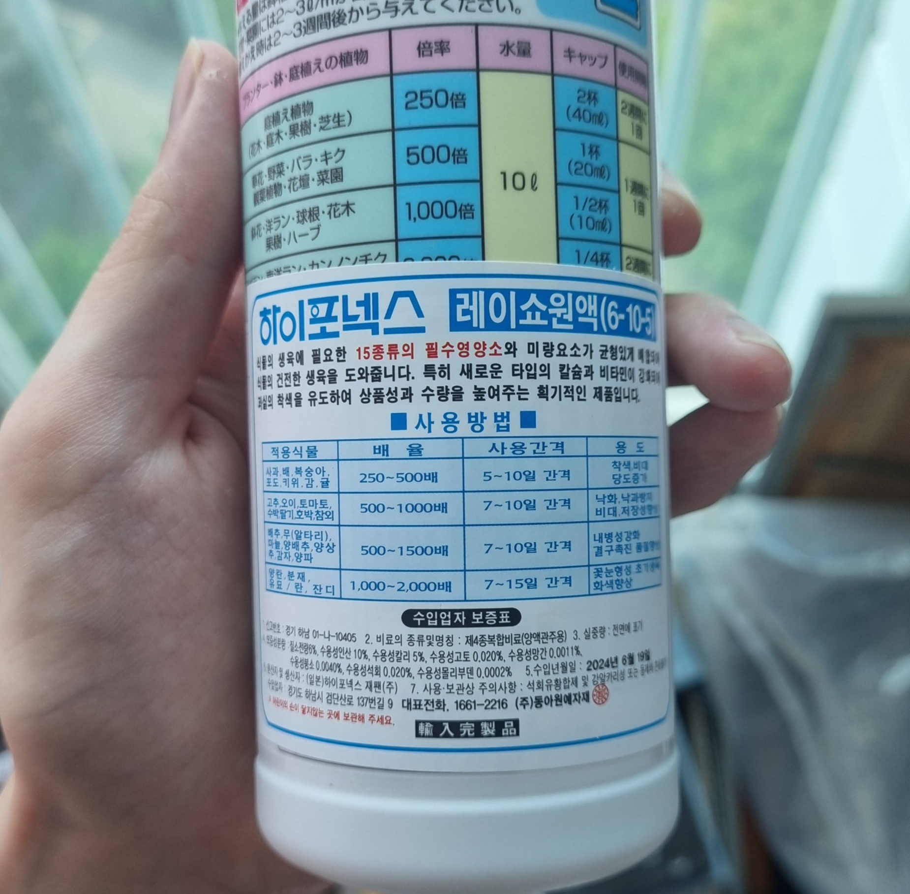 알만한 분들은 다 알거라 생각합니다. 식집사 액체비료의 정석 같은 물건이죠. 질소-인산-칼리 비율은 6:10:5 이고 비료 원액이기 때문에 물에 희석해서 사용해야 합니다.