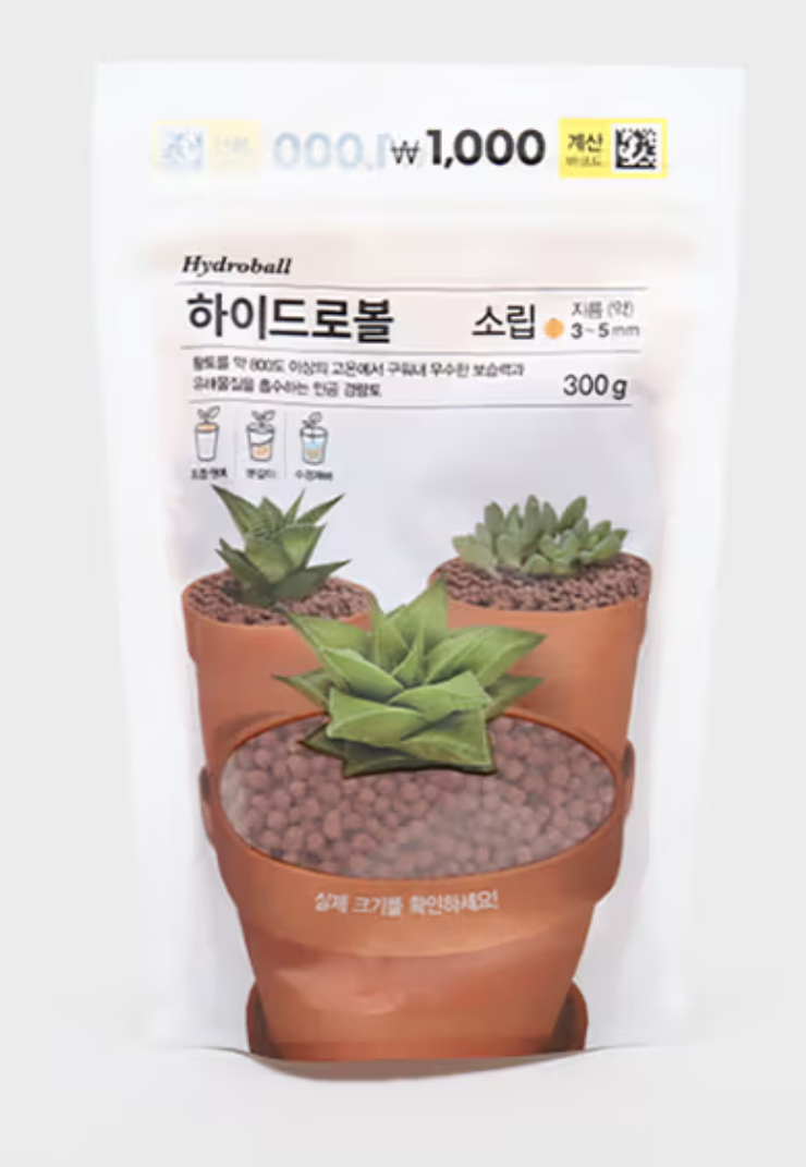 - 하이드로볼은 소/중/대의 사이즈로 나눠서 팔았습니다. 각각 용량은 300g으로 동일했습니다. 저는 화분 밑에 깔망을 깔고 중자 하이드로볼을 사서 화분 밑의 배수층을 만들어주는 용도로 썼습니다.