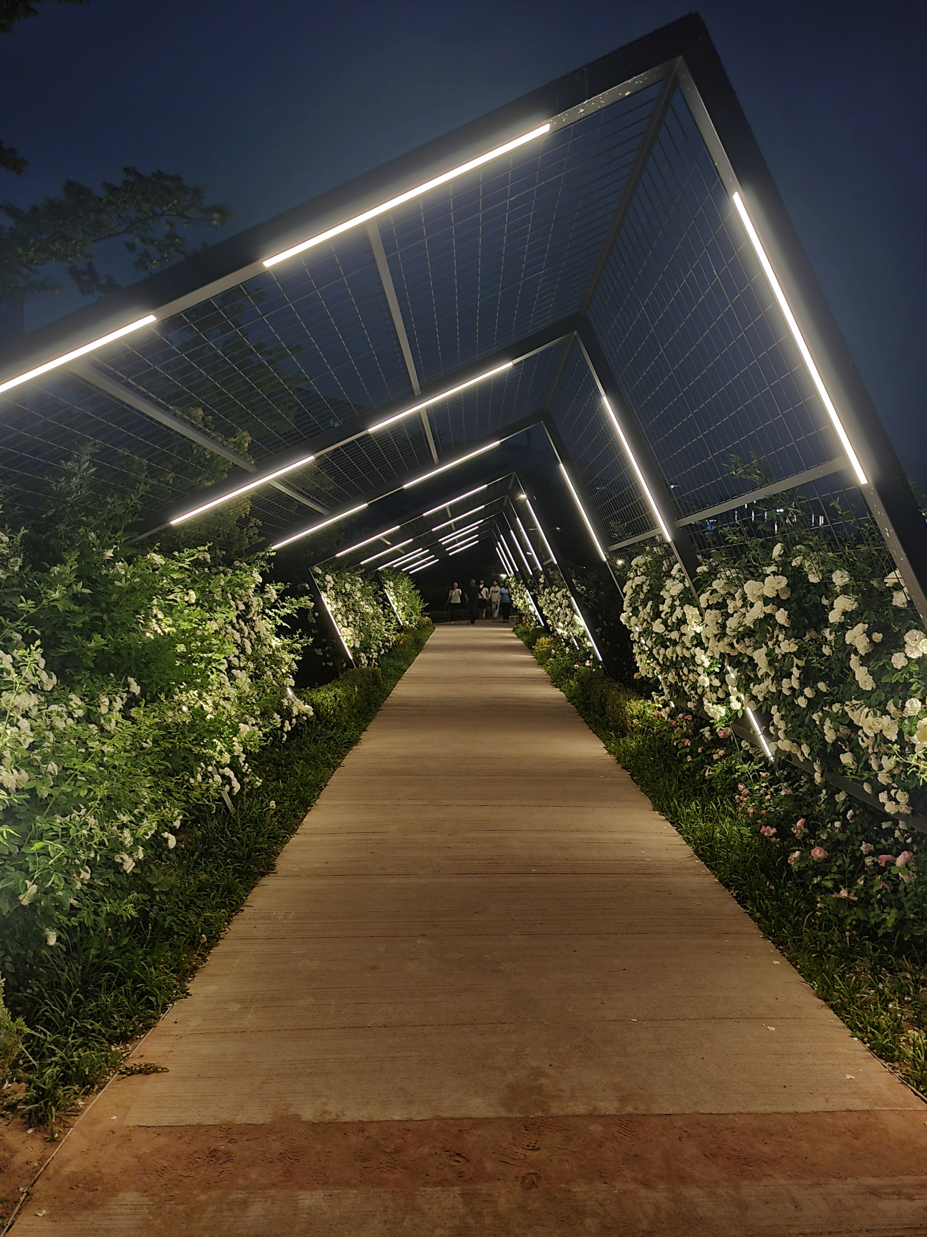 아까 식물원의 하이라이트라고 했던 햇살정원은 밤에도 그 미모를 잃지 않습니다. 오히려 인생샷을 건지고 싶다면 밤에 오는 것도 괜찮을 거 같네요. 빨간색, 하얀색 장미들과 노란 조명이 어우러져 아주 멋있습니다. 특히 조형물 안은 웨딩 촬영 장소라고 해도 믿을 정도로 예쁩니다.