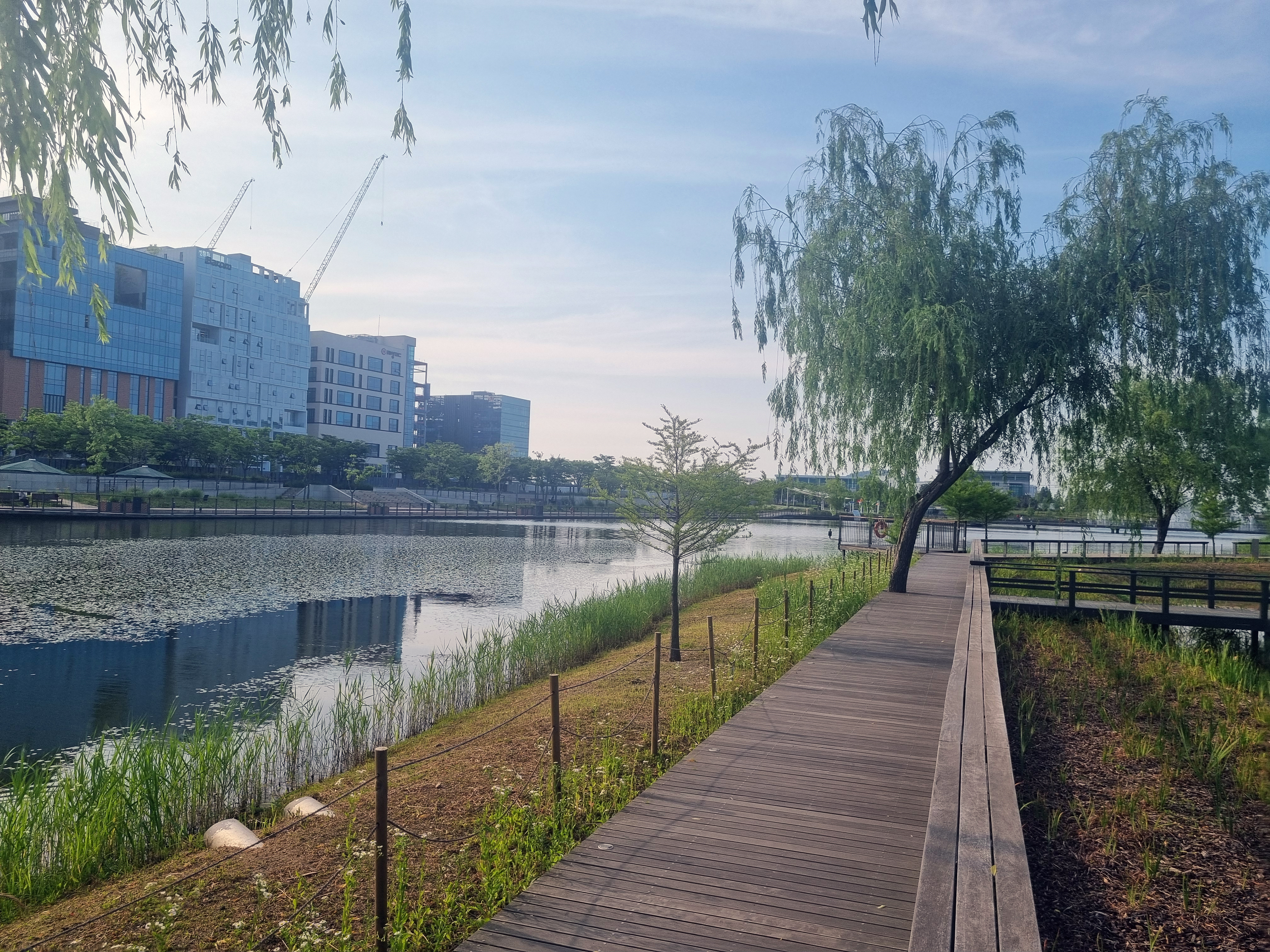이제 거의 마지막입니다! 호수원을 둘러서 가다 보면 긴 일자 산책로가 있습니다. 러닝을 뛰시는 분들에게도 적당한 길인지, 오후/저녁을 가리지 않고 다 같이 런닝을 뛰시는 분들이 많습니다. 오늘 제가 앞서 보여드린 코스로 다니면 약 2.5km 정도의 거리가 나옵니다.