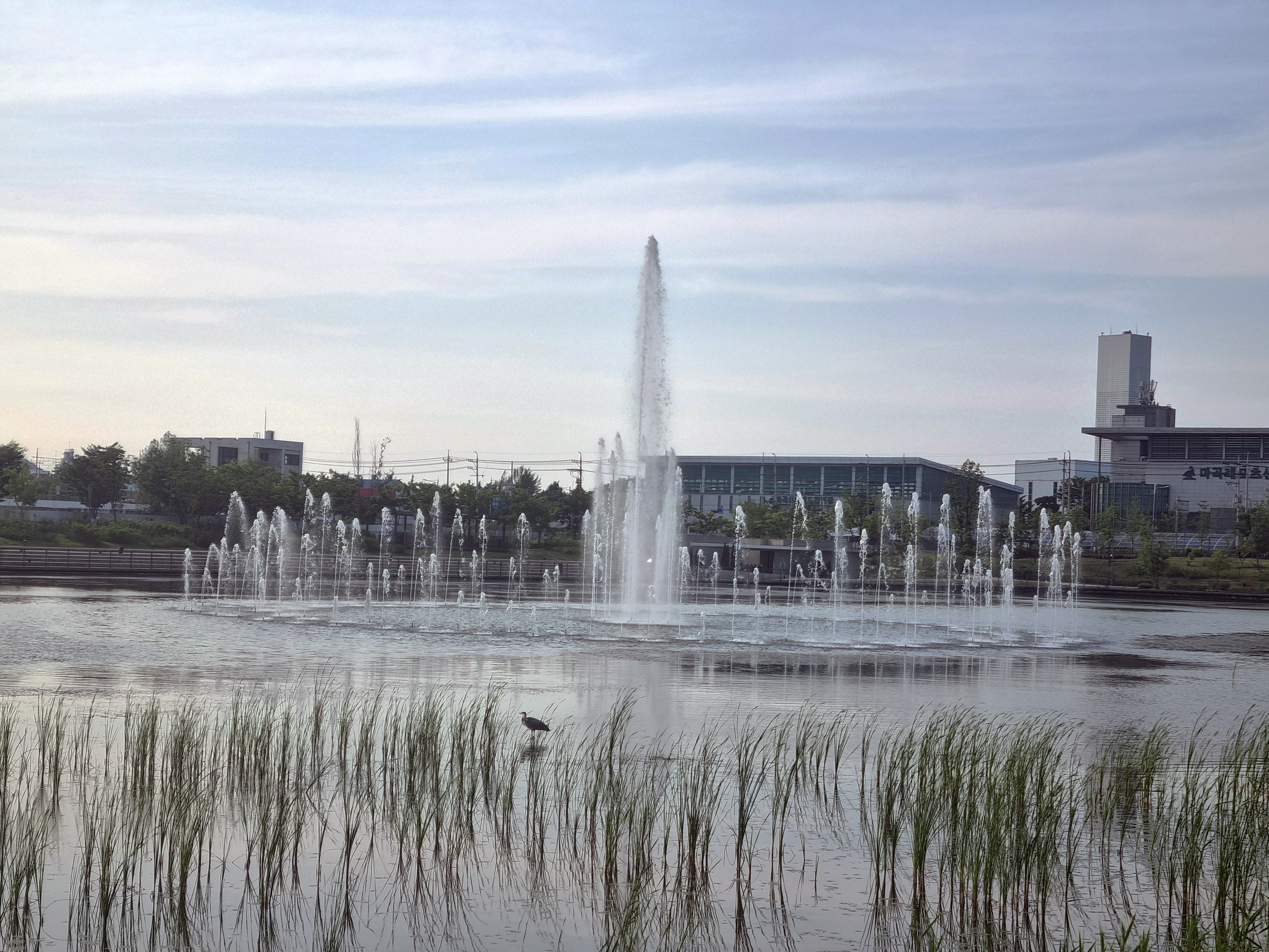 붓꽃원을 뒤로하고 조금 더 길을 걷다 보면 서울식물원의 또 다른 아이콘, 호수원의 대형 분수가 보이기 시작합니다. 이 분수는 야간에는 조명을 비춘 상태로 분수가 나와 또 다른 매력이 있습니다.