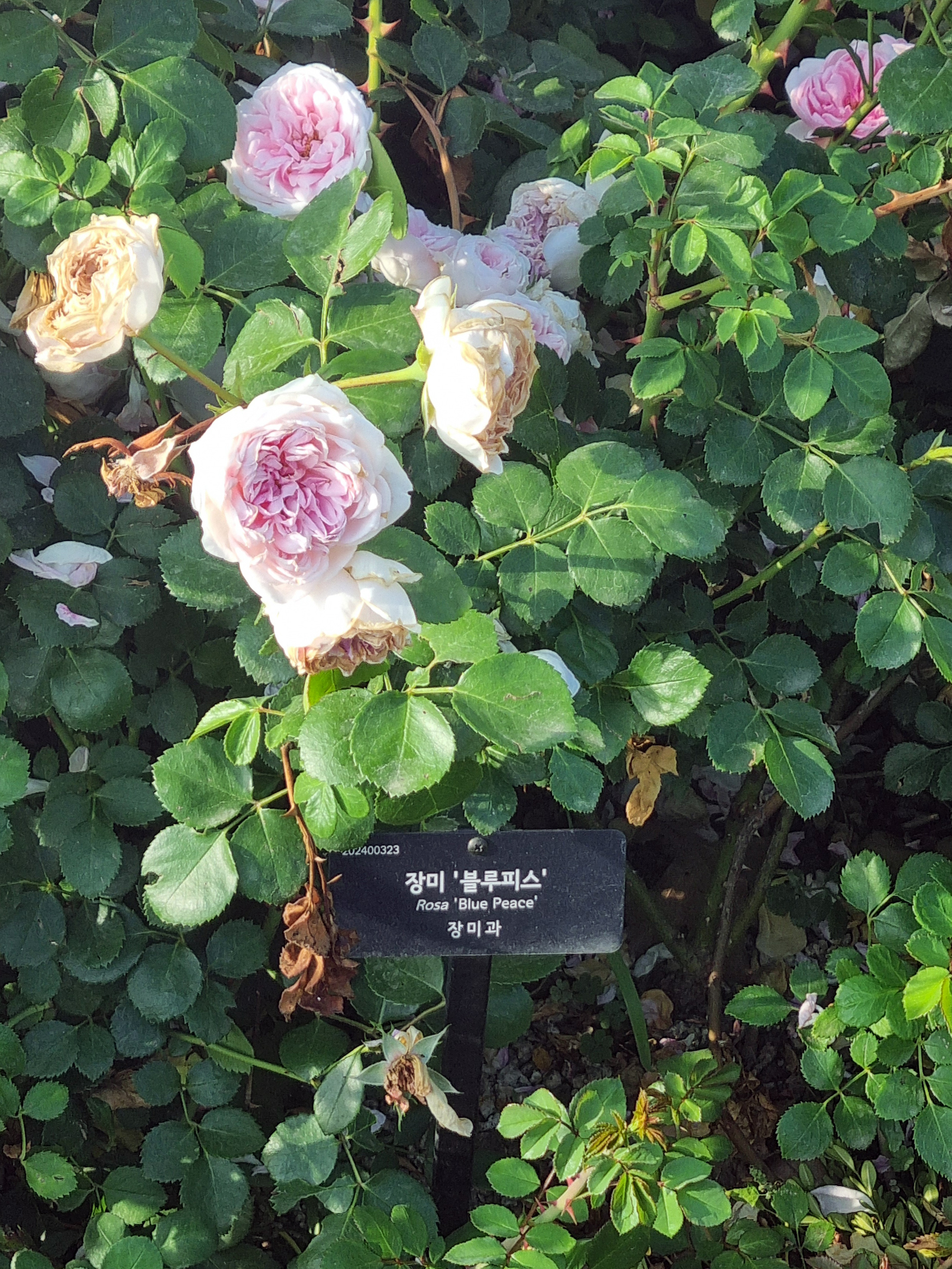 장미는 자연적으로 파란색이 발색될 수가 없다고 합니다. 그래서 이런 분홍/하얀색 계열들이 파란색 대신 '블루'라는 이름을 가지고 있는지도 모르겠네요.