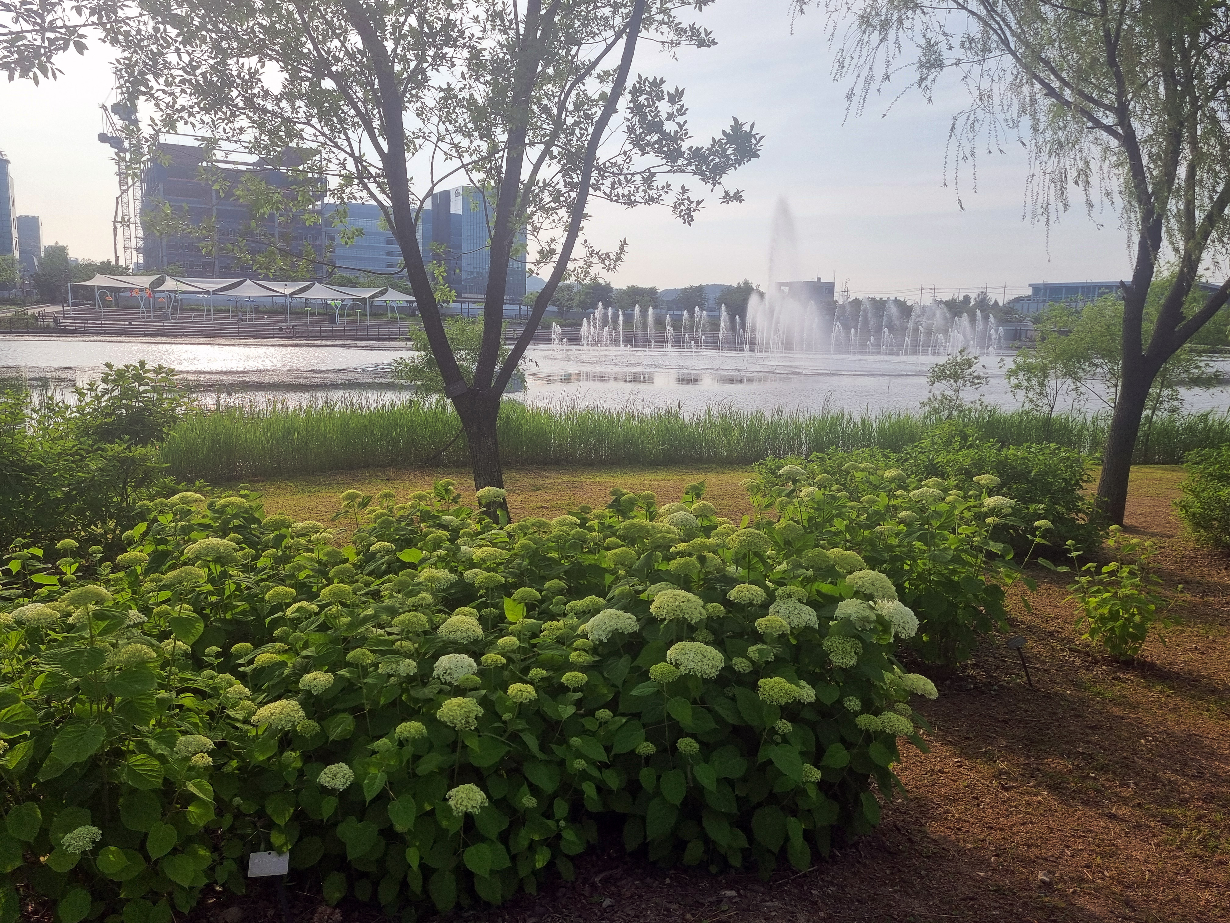 식물원 수국농사가 망한 줄 알았더니, 그래도 수양버드나무 밑에 있는 아나벨 수국들은 잘 자라서 꽃을 피웠습니다. 아무래도 수국이 좋아하는 적당한 그늘이 있어 잘 큰 게 아닐까 예상해 봅니다.