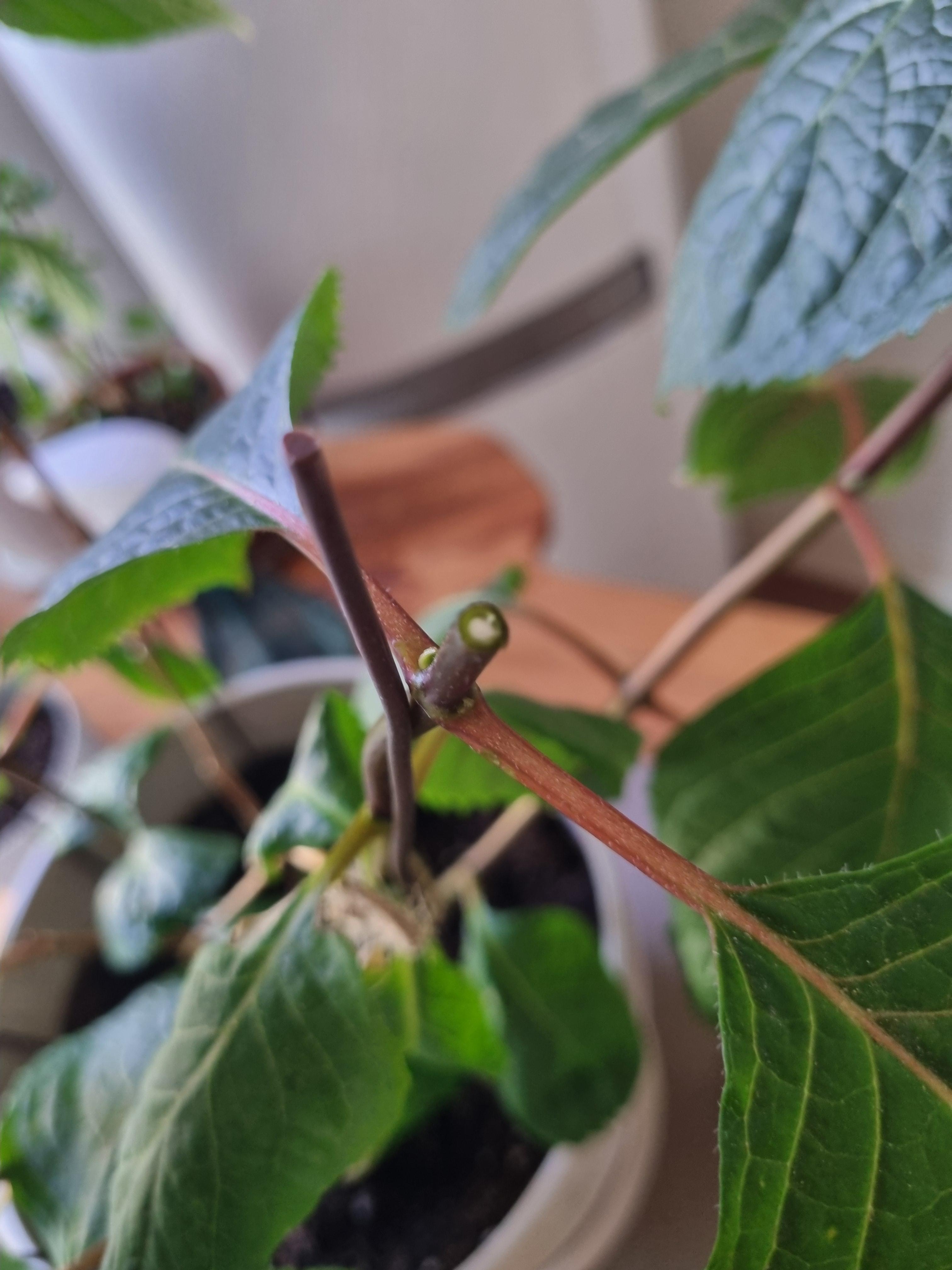 이렇게 잘라줬으니, 그 밑의 가지 사이의 겨드랑이에서 새로운 가지가 나올 겁니다. 엔들레스썸머 품종은 운이 좋다면 줄기가 한번 더 자라나와 9월 까지도 꽃을 한번 더 볼 수 있다고 합니다. 하지만... 저는 내년에 좀 더 멋진 꽃을 원하므로 아마 이 이상으로 새로운 꽃대가 올라오면 잘라주지 않을까 싶네요. 내년 봄과 여름에는 꼭 분갈이를 잘 해서 파란 꽃을 보고 싶네요.
